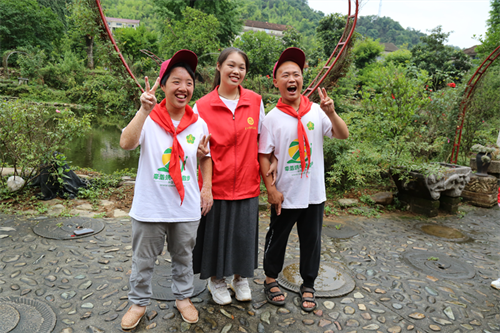 智力殘疾人(智力相當(dāng)于3-5歲)因語(yǔ)言、行動(dòng)遲緩,被昵稱為“蝸牛”。參加活動(dòng)的20名“蝸牛”均來(lái)自岳陽(yáng)市德馨助殘服務(wù)中心(昵稱“蝸牛山莊”)。他們?cè)谥鷼堉驹刚吲阕o(hù)下,參觀十三村,行走于各個(gè)景點(diǎn),從生態(tài)型車間、萬(wàn)壇地下“醬城”到笑臉墻、愛(ài)你一萬(wàn)年等“打卡點(diǎn)”,一路開(kāi)心不已。