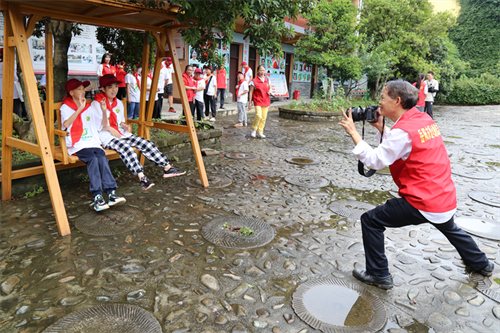 “六一快樂(lè),愛(ài)你一萬(wàn)年。”在千年古銀樹(shù)下,李國(guó)武與助殘志愿者帶領(lǐng)孩子們接二連三歡呼著,合影留念,記錄幸福時(shí)刻,將公益助殘活動(dòng)推向了高潮。