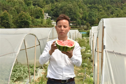 “甜蜜”產(chǎn)業(yè)需要精心種植。今年58歲的向子明來自湖南懷化,種植西瓜已有七八年時間,在幾年的種植中,他深知西瓜生長的習(xí)性,采用了“大棚+地膜覆蓋”高效種植技術(shù),通過溫室大棚種植,為西瓜提供了適宜的生長環(huán)境,確保了西瓜的產(chǎn)量和品質(zhì)。