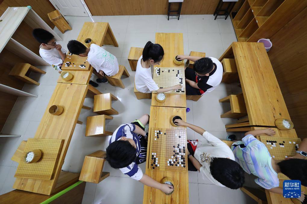 7月7日,在河南省商丘市睢陽(yáng)區(qū)一家圍棋培訓(xùn)機(jī)構(gòu),孩子們?cè)谙聡濉?/p>