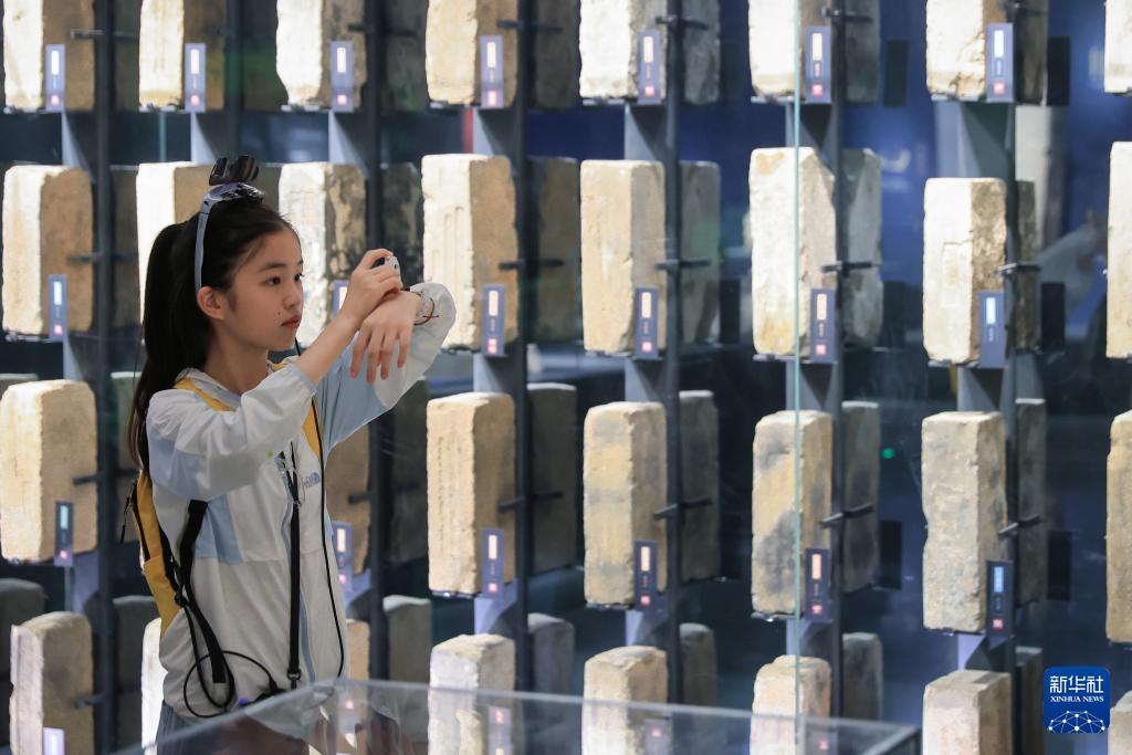 7月7日,一名小朋友在南京城墻博物館參觀。
