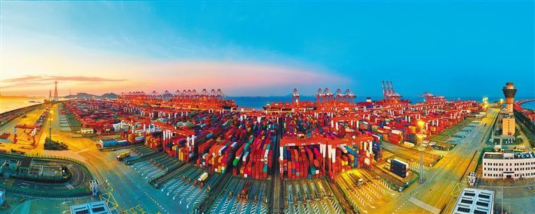 7月7日,上海洋山深水港區(qū)自動(dòng)化碼頭,多艘超大型集裝箱貨輪正在進(jìn)行裝卸作業(yè)。今年上半年,該港完成集裝箱吞吐量超2500萬標(biāo)箱。