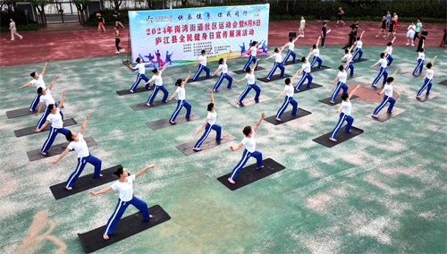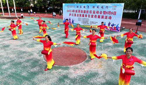 2024年8月8日清晨,清風(fēng)習(xí)習(xí),安徽省合肥市廬江縣崗灣街道社區(qū)運(yùn)動(dòng)會(huì)暨慶祝全國(guó)第十六個(gè)“全民健身日”宣傳展演活動(dòng)在廬江全民健身中心舉行,活動(dòng)突出“快樂(lè)健身,你我同行”主題,10支隊(duì)伍200余名武術(shù)健身愛(ài)好者展演了傳統(tǒng)武術(shù)、太極拳、太極劍、廣場(chǎng)舞、健身氣功、體育舞蹈、柔力球等項(xiàng)目。  (巢志斌  攝)