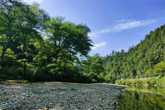 暮夏時節(jié),烈日灸烤著大地,禾苗卷曲著身軀。安徽省休寧縣流口鎮(zhèn)卻依然綠蔭蒼翠,靜美如畫。