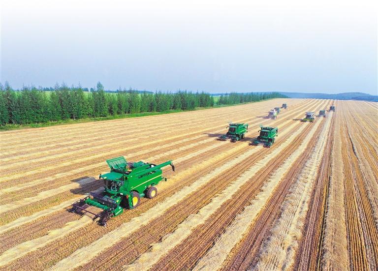 8月23日,農(nóng)機(jī)手駕駛聯(lián)合收割機(jī)在內(nèi)蒙古自治區(qū)呼倫貝爾農(nóng)墾牙克石農(nóng)牧場公司田間作業(yè)。該公司通過推動高標(biāo)準(zhǔn)農(nóng)田建設(shè)、水肥一體化技術(shù)應(yīng)用等,以科技創(chuàng)新助力豐產(chǎn)增收。