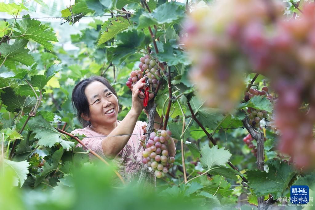 9月7日,河北省遵化市團(tuán)瓢莊鎮(zhèn)朱官屯村農(nóng)民在采摘葡萄。