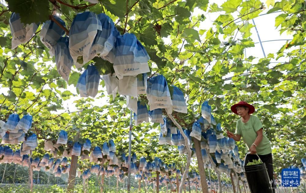 9月7日,山東省棗莊市孟莊鎮(zhèn)農(nóng)民在果園采摘葡萄。