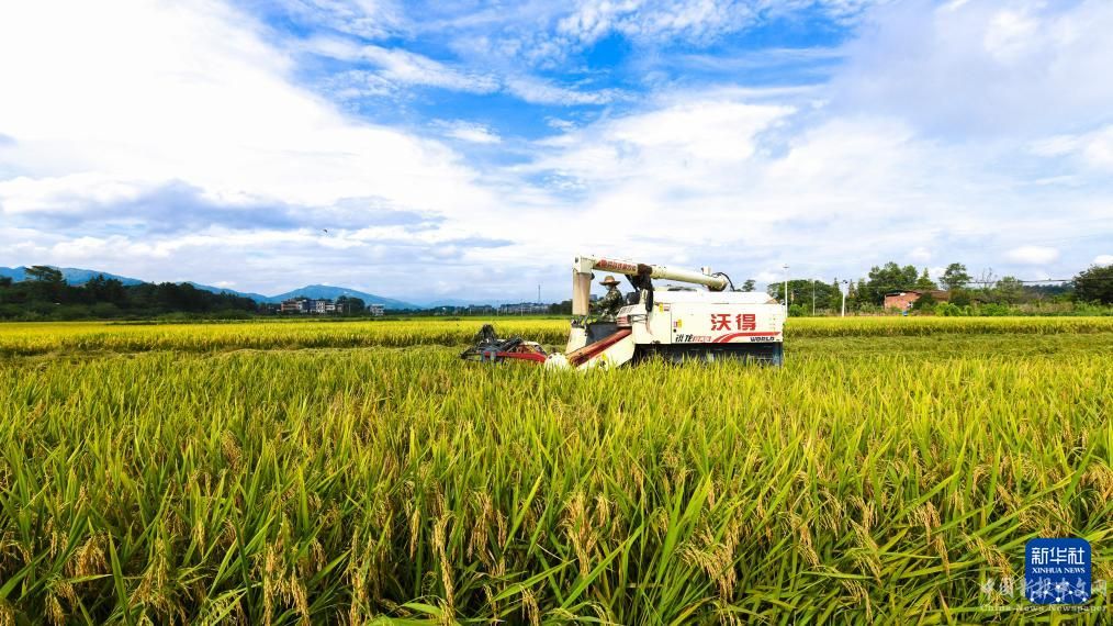 9月7日,湖南省常寧市勝橋鎮(zhèn)農(nóng)民駕駛收割機(jī)在收割水稻。