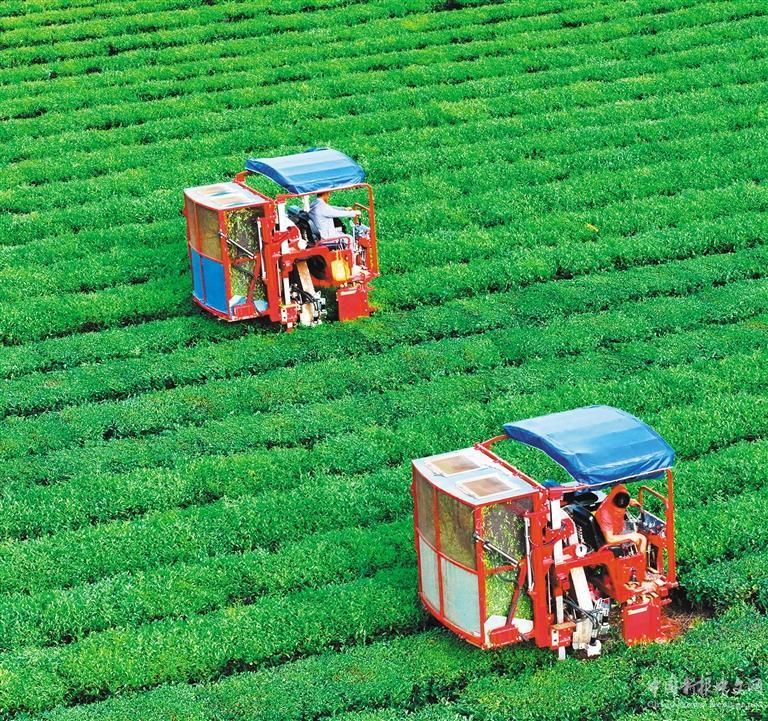 ?、?月24日,江西省吉安市泰和縣泰和墾殖場茶葉種植基地,工人駕駛采茶機采收秋茶。