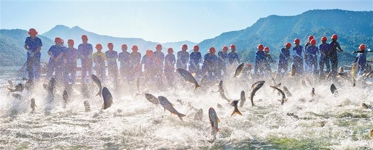 ?、?月5日,浙江省杭州市淳安縣千島湖啟動鰱鳙魚捕撈季,一網(wǎng)收獲了6萬斤鰱鳙魚。