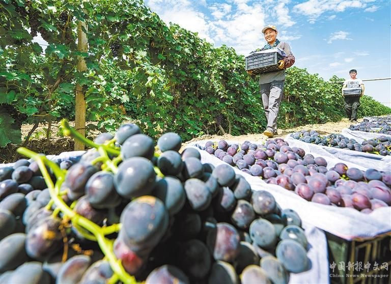 ?、?月19日,新疆昌吉回族自治州昌吉市大西渠鎮(zhèn)玉堂村,村民在采收葡萄。昌吉市各鄉(xiāng)鎮(zhèn)種植的2.9萬畝葡萄迎來豐收。何 龍攝(中經(jīng)視覺)