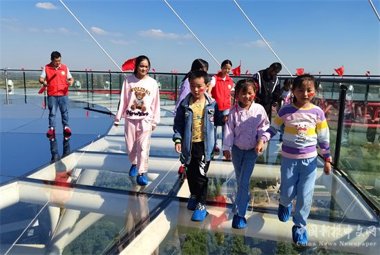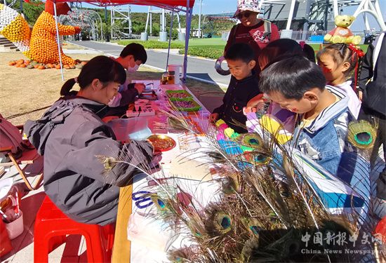 2024年10月4日,安徽省合肥市廬江縣白山鎮(zhèn)10余名留守兒童,在當?shù)匾患疑鐣?wù)組織的引領(lǐng)下,體驗高空玻璃棧道、觀賞孔雀、學習用孔雀羽毛制作掛件、學習非遺項目漆畫等,小朋友們快樂度過國慶假日一天。(巢志斌 攝)
