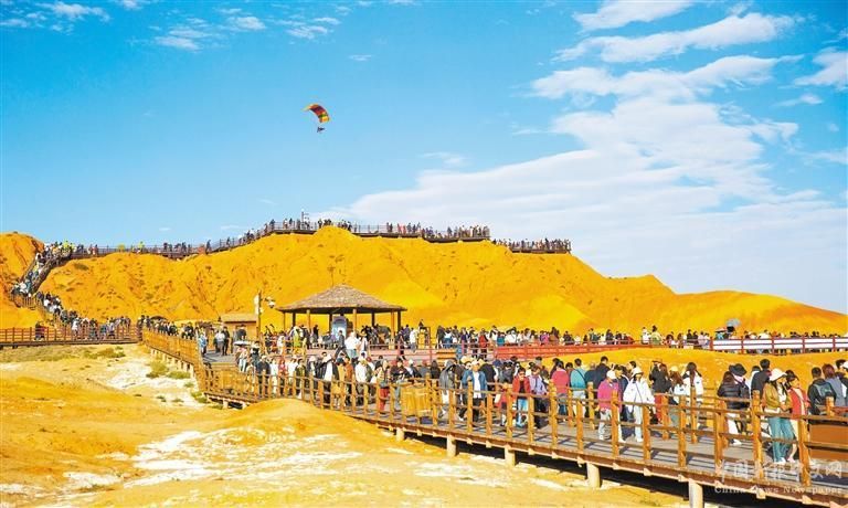 10月3日,甘肅省張掖七彩丹霞景區(qū),游客乘坐動(dòng)力滑翔傘游覽。近年來(lái),當(dāng)?shù)卮罅ν苿?dòng)“低空經(jīng)濟(jì)”發(fā)展,打造低空旅游新品牌。楊 瀟攝(中經(jīng)視覺(jué))