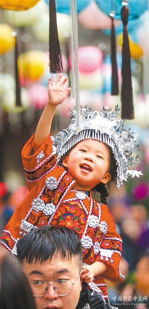 10月2日,貴州省遵義市播州區(qū),小朋友穿著民族服飾在烏江寨景區(qū)游玩。袁福洪攝(中經(jīng)視覺(jué))