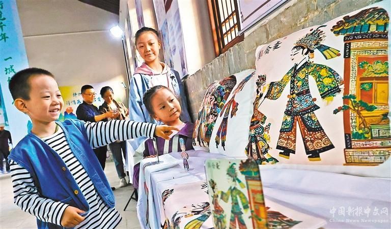 10月4日,山西省運(yùn)城市新絳縣絳守居園池,小朋友在觀看皮影文創(chuàng)產(chǎn)品。旅游平臺(tái)數(shù)據(jù)顯示,今年國(guó)慶假期,山西景區(qū)門(mén)票訂單量同比增長(zhǎng)59%。高新生攝(中經(jīng)視覺(jué))