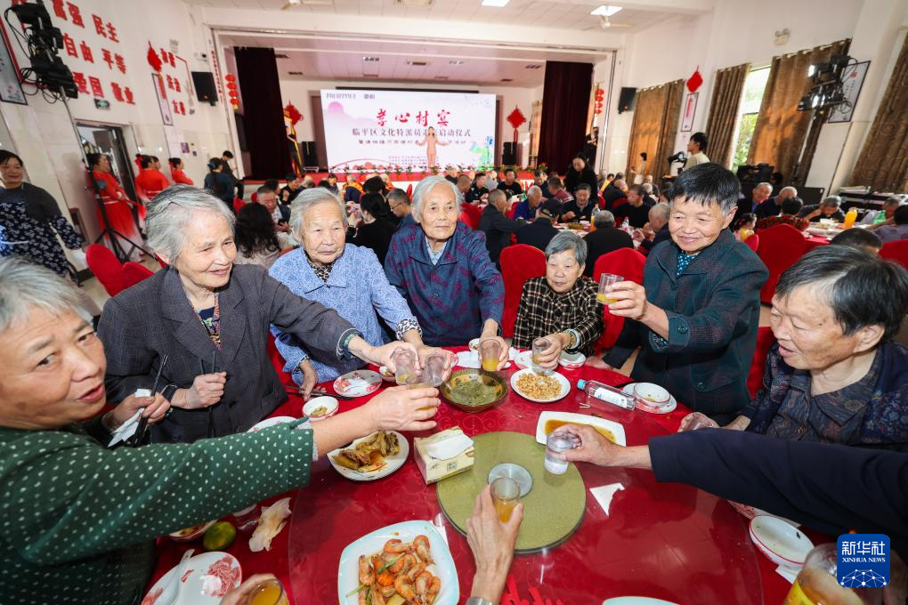 當(dāng)日,浙江省杭州市臨平區(qū)文化特派員走親啟動(dòng)儀式暨塘棲鎮(zhèn)河西埭村迎重陽(yáng)孝心節(jié)“孝心村宴”活動(dòng)在河西埭村文化禮堂舉行。村里200多位70周歲以上的老人齊聚一堂,活動(dòng)現(xiàn)場(chǎng)還有志愿者提供義務(wù)理發(fā)、量血壓等便民服務(wù)。