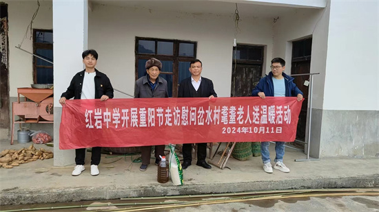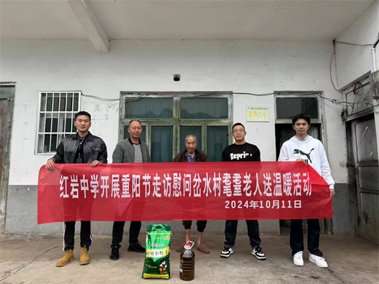 為積極弘揚中華民族“尊老、敬老、愛老、助老”的傳統(tǒng)美德,引導師生學會感恩,增強孝親敬長、愛老助老意識。2024年10 月 11 日,貴州省桐梓縣花秋鎮(zhèn)紅巖中學以“九九重陽節(jié),濃濃敬老情”為主題,在該校黨支部的帶領下,組織部分教師同岔水村村干部一道,翻山越嶺登門慰問花秋鎮(zhèn)岔水村耄耋之年的80名老人,為他們送上米、油等生活物資進行慰問,同時祝福老人們節(jié)日快樂、身體健康。