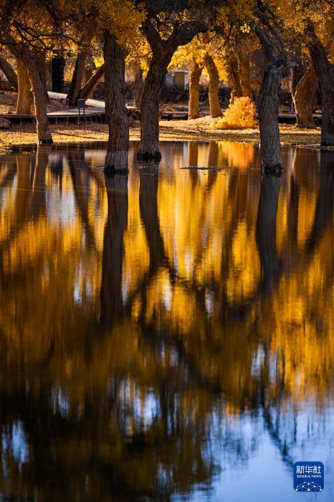 這是10月27日在額濟(jì)納旗大漠胡楊林景區(qū)拍攝的胡楊。