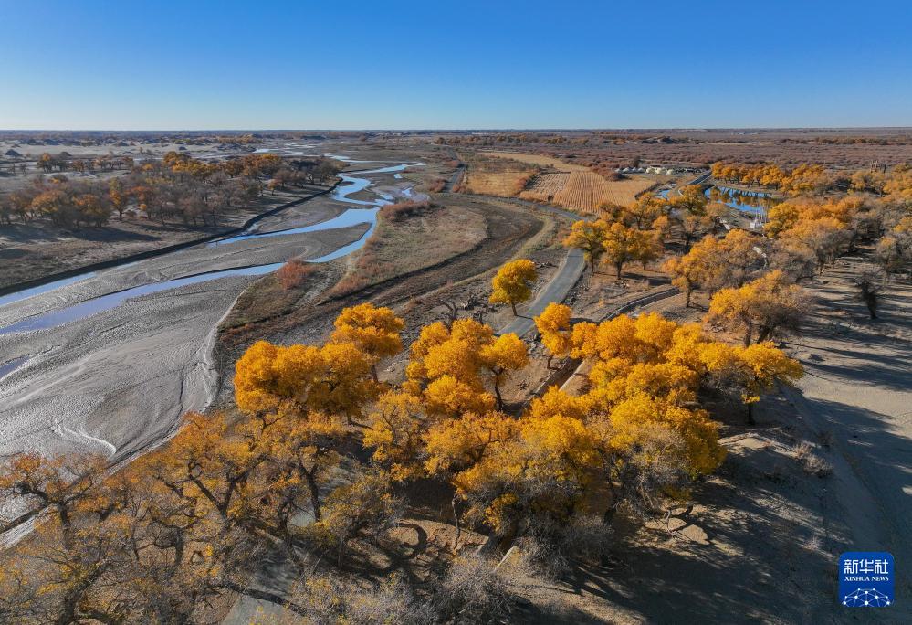 這是10月27日在額濟(jì)納旗黑河沿岸拍攝的野胡楊(無人機(jī)照片)。