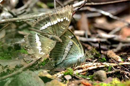 “第一次記錄到鋸帶翠蛺蝶時(shí),是在一片針闊葉混交林中,因此蝶外形比較破舊,故沒引起我們足夠注意。第二次監(jiān)測(cè)到它時(shí),是在接近天寶巖主峰的原始林下,當(dāng)時(shí)兩只蝴蝶正在林間求偶嬉戲。”天寶巖保護(hù)區(qū)監(jiān)測(cè)人員回憶道。
