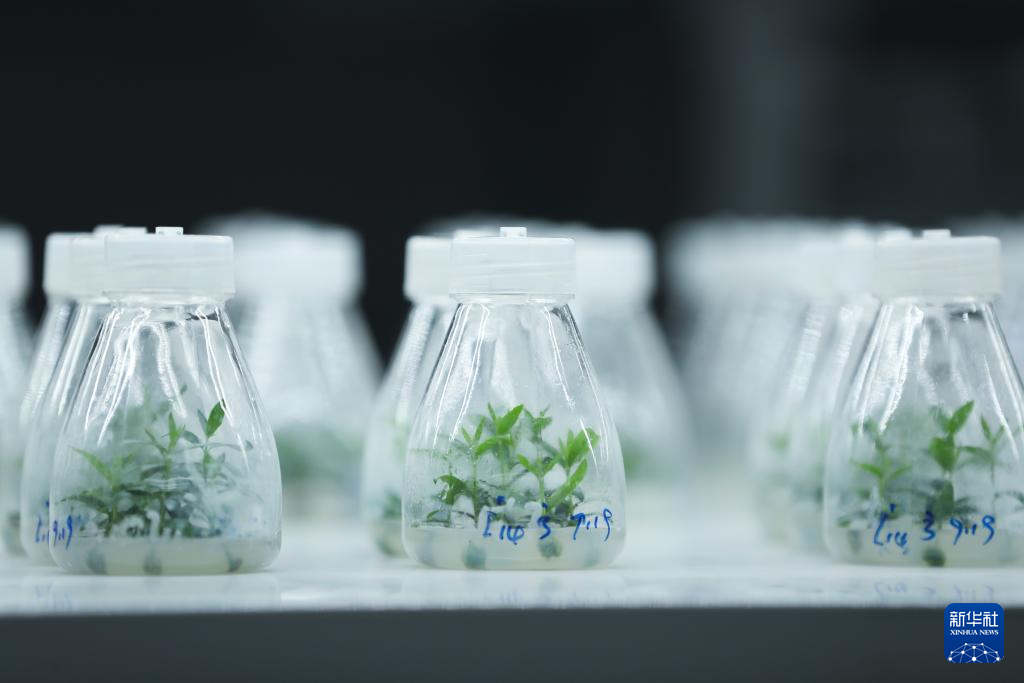這是10月28日在甘肅省隴南市武都區(qū)的隴南市經(jīng)濟(jì)林研究院實(shí)驗(yàn)室內(nèi)拍攝的油橄欖組培苗。