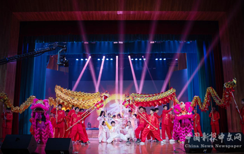 隨著鏗鏘激越、熱鬧歡快的鑼鼓聲,兩條錦色長(zhǎng)龍?jiān)谖枧_(tái)上翻騰起舞,幾只威武雄獅緊隨其后,踢跳翻蹬,立臥滾抖,會(huì)場(chǎng)頓時(shí)歡騰起來,匯演就在這龍騰獅躍的場(chǎng)景中拉開了帷幕。