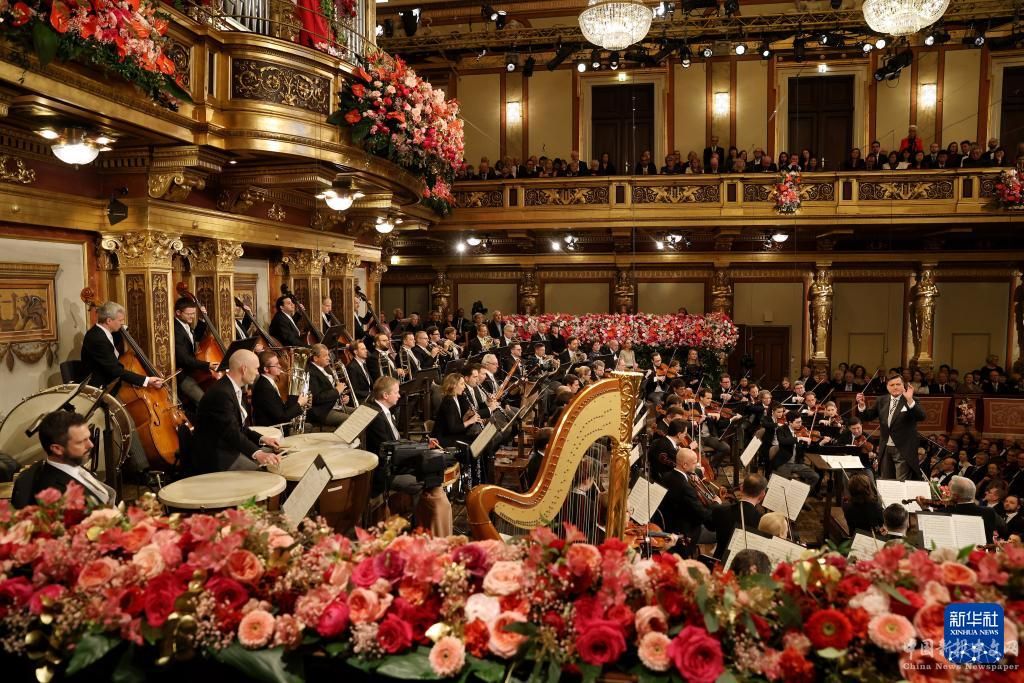 1月1日,維也納愛樂樂團在奧地利維也納金色大廳新年音樂會上演奏。