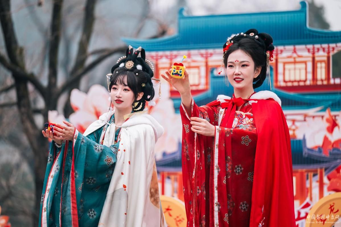 在陜西華清宮,“唐詩中的國潮文化”系列活動正如火如荼展開,游客通過體驗詩詞互動、墨寶賜福等多項活動,感受喜慶熱鬧的節(jié)日氛圍,共同慶賀2024年的第一天。