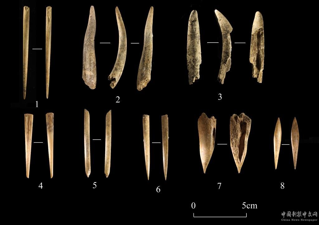 青池遺址第II發(fā)掘區(qū)出土的骨針、骨錐和骨角器(新石器時代)。天津市文化遺產(chǎn)保護中心供圖