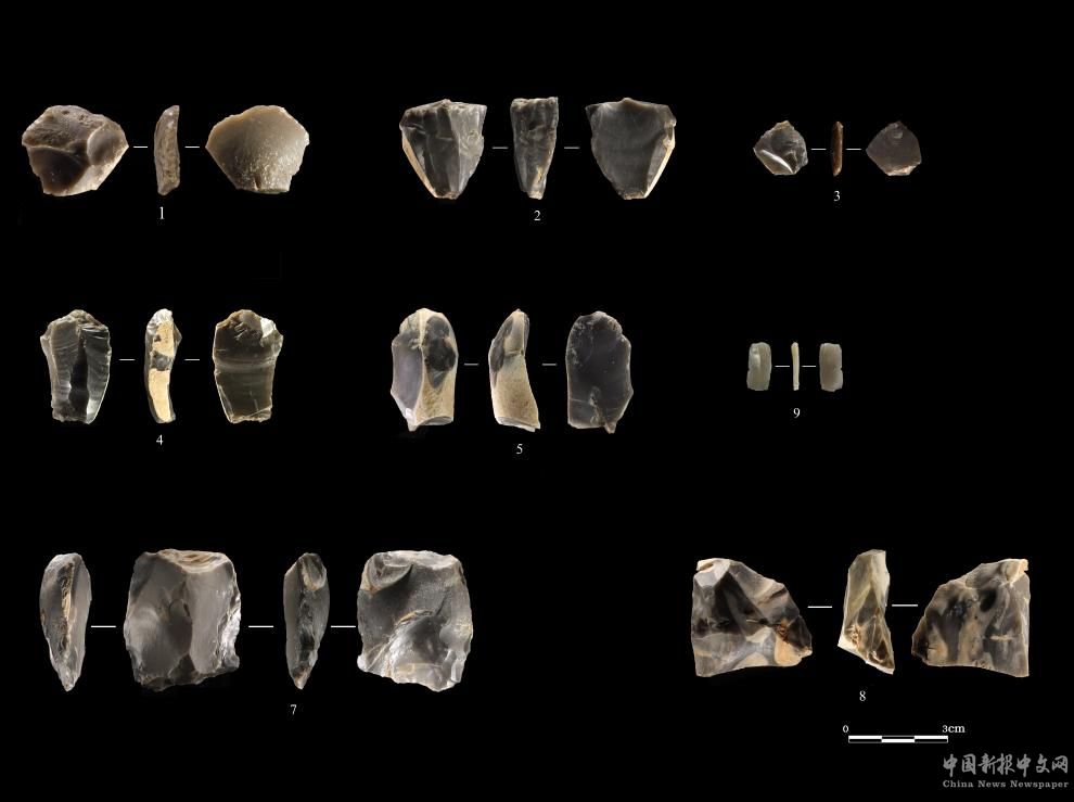 青池遺址第I發(fā)掘區(qū)出土的打制石器(舊石器時代)。天津市文化遺產(chǎn)保護中心供圖