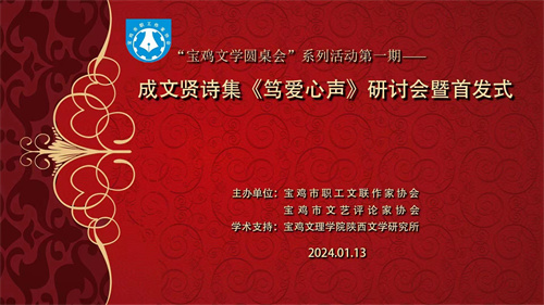 直面當下寫作,對話交流推介。1月13日下午,備受關(guān)注的“寶雞文學圓桌會”系列活動第一期——成文賢詩集《篤愛心聲》研討會暨首發(fā)式在寶雞市艷陽天宴會中心舉行,來自寧夏、北京、陜西的近30位學者、評論家和詩人歡聚一堂為其詩懇談把脈,也為寶雞文學新一年發(fā)展火熱“開席”。