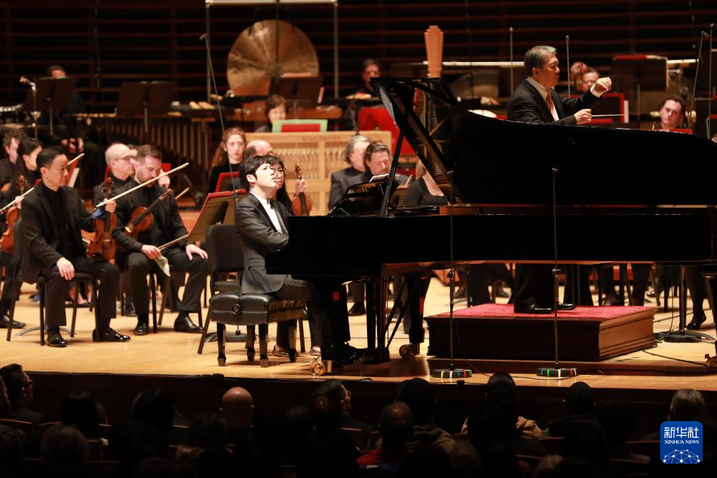 1月12日,在美國(guó)費(fèi)城,中國(guó)鋼琴家張昊辰(中)在2024年費(fèi)城交響樂(lè)團(tuán)新春音樂(lè)會(huì)上演出。