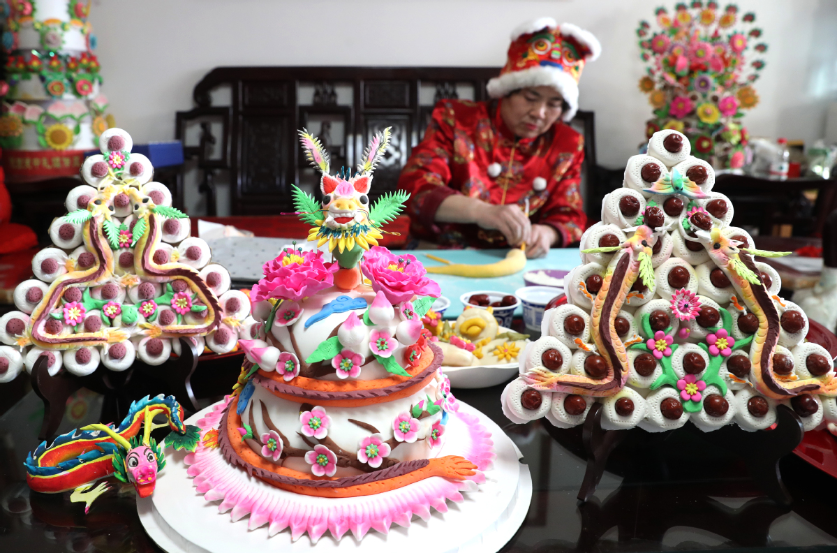 2024年1月26日,70歲的“關(guān)中禮饃”非遺傳承人黨亞賢制作龍年花饃。中國日報記者 鄒紅 攝