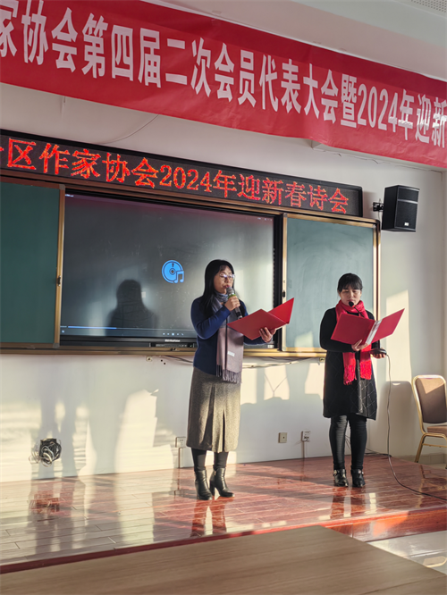 2024年陳倉作協(xié)喜迎新春詩會(huì)在熱烈的掌聲中開始,作協(xié)會(huì)員們用自己的精彩才藝和熱情展示,載歌載舞迎接新年新春的到來,向大家獻(xiàn)上了一場(chǎng)視覺盛宴。魏娜帶來了舞蹈《大家一起來》,她用優(yōu)美的舞姿、自信的展現(xiàn)歌展現(xiàn)了新時(shí)代陳倉作協(xié)人的魅力和風(fēng)采。張瑋、劉瑞、段亞明、閆瑾、季純合作的詩歌朗誦《我是青年》,氣勢(shì)雄厚、聲音洪亮,贊美了青春的美好,抒發(fā)了對(duì)祖國的依戀、對(duì)未來的承諾,表達(dá)了建設(shè)美好祖國的凌云壯志。