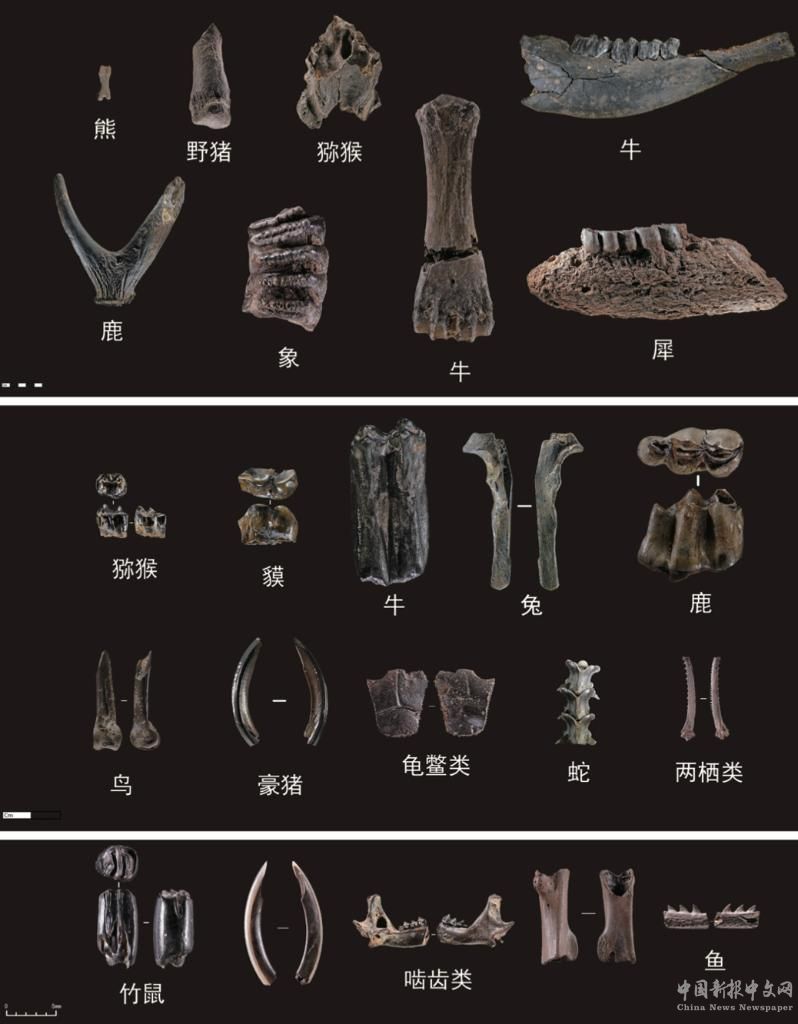 四川資陽市濛溪河舊石器時代遺址出土的動物化石(資料照片)。