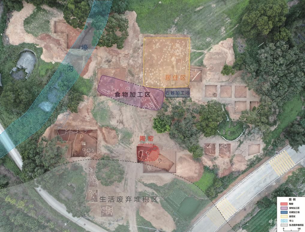 福建平潭縣殼丘頭新石器時代遺址群殼丘頭遺址功能區(qū)分布圖(資料照片)。