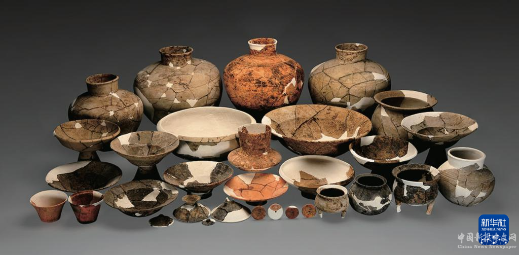 湖北荊門市屈家?guī)X新石器時代遺址出土的陶器(資料照片)。