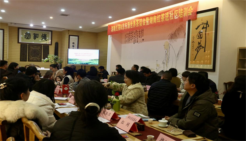 1月30日,“湖南紅茶&京東酒世界茶話會暨湖南紅茶進社區(qū)培訓會”長沙德和堂茶館舉行。旨在通過探索與京東酒世界線下店合作,促進“湖南紅茶”品牌產(chǎn)品走進社區(qū)、有效拓展長沙中高端消費市場。湖南省農(nóng)業(yè)農(nóng)村廳鄉(xiāng)村產(chǎn)業(yè)發(fā)展處胡建群處長、省供銷合作總社科教處李江波科長、省紅茶產(chǎn)業(yè)促進會伍崇岳會長、省茶業(yè)協(xié)會王準秘書長、京東酒世界湖南區(qū)域經(jīng)理劉春東、省紅茶產(chǎn)業(yè)發(fā)展促進會副會長蔡玉蘭、省紅茶產(chǎn)業(yè)發(fā)展促進會秘書長黃韜、省茶業(yè)協(xié)會副秘書長楊柳、京東酒世界長沙河西理事長胡婷婷和京東酒世界岳麓區(qū)旗艦店、濱江旗艦店、長房云時代店、梅溪湖店、洋湖店、王府井店、榮升家園店、月宮街店、望城旗艦店等店負責人,以及茶陵縣茶祖印象茶業(yè)有限公司,桂東縣玲瓏王茶葉開發(fā)有限公司、湖南老一隊茶業(yè)有限公司、湖南馮河大龍山茶業(yè)有限公司、桂陽金仙生態(tài)農(nóng)業(yè)開發(fā)有限公司、湖南江華馮城古樹苦茶有限公司以及安化縣建新山界上茶業(yè)有限公司、懷化芷江茶業(yè)有限公司等首批批參與湖南紅茶進社區(qū)活動的企業(yè)代表共50余人與會。