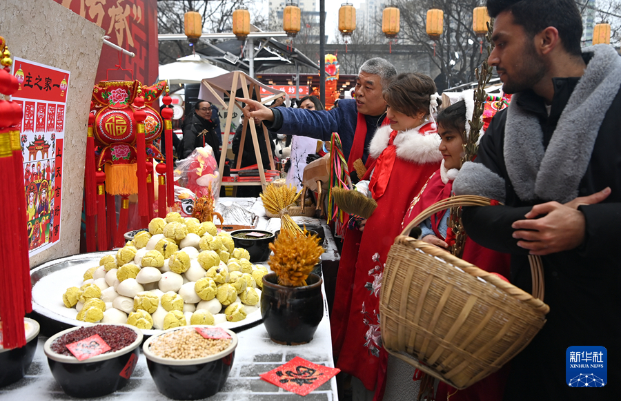 2月2日,在西安永興坊舉行的小年活動上,來自西安各大學的留學生在民俗專家的講解下了解小年祭灶所用的物品。