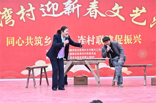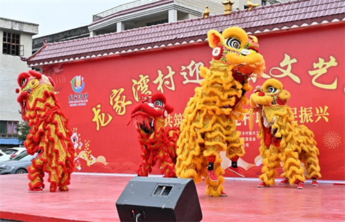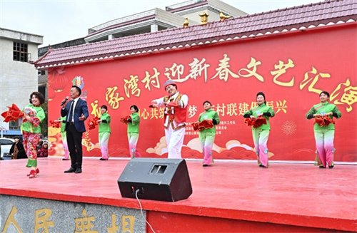 當(dāng)天,龍家灣村舉行“同心共筑鄉(xiāng)村夢(mèng),連村聯(lián)建促振興”迎新春文藝匯演,當(dāng)?shù)貜V大干群,臉上洋溢著幸福的笑容,共聚一堂,喜迎龍年新春。晚會(huì)在開場(chǎng)鼓《紅紅火火總是年》中拉開帷幕,緊接著一個(gè)個(gè)精彩紛呈的節(jié)目輪番上演?!丢{子表演》《吉祥歡歌》《懶漢脫貧》《美麗中國》《早安隆回》《在希望的田野上》等13個(gè)精彩節(jié)目相繼登場(chǎng),為現(xiàn)場(chǎng)觀眾獻(xiàn)上了一場(chǎng)精彩絕倫的視聽盛宴。雖然天氣十分寒冷,但全場(chǎng)沉浸在一片歡樂的氣氛中。演員激情登臺(tái)表演,觀眾的熱情不減。此次文藝匯演展現(xiàn)出了群眾對(duì)美好生活的向往和追求以及精神風(fēng)貌,更展示了鄉(xiāng)村振興的新氣象和文化自信。