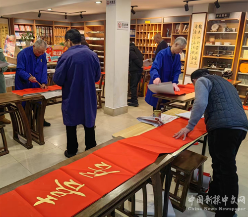 中國(guó)新報(bào)訊(魏新敏)無(wú)聯(lián)不新春,有聯(lián)年味濃。為弘揚(yáng)中華民族傳統(tǒng)美德,營(yíng)造新春佳節(jié)喜慶的節(jié)日氛圍。春回大地、大雪飛揚(yáng)、詩(shī)書飄香。2月4日,在臨湘市新華書店?duì)I業(yè)大廳,一堂精彩贈(zèng)送春聯(lián)活動(dòng)正在舉行。臨湘市著名書法家余智民、陳亞洲、姚神佑、劉冰松、李祥勝等四人即興揮毫為讀者與市民贈(zèng)送春聯(lián)。字體活發(fā),勾畫了然,意義新穎,深受大家喜愛和歡迎。紅色的紙,濃濃的墨,飽含著美好的寓意,體現(xiàn)出滿滿的年味。這次活動(dòng)既豐富了居民的文化生活,又營(yíng)造了喜慶、吉祥的節(jié)日氛圍,以市民喜聞樂見的形式,讓廣大市民在紅紅火火的年味中感受中華傳統(tǒng)文化的獨(dú)特魅力。