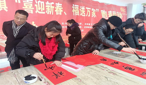 2024年2月2日上午,在歸陽鎮(zhèn)湘江碼頭涼亭處,由歸陽鎮(zhèn)人民政府、歸陽鎮(zhèn)工會(huì)委員會(huì)主辦,祁東縣書法家協(xié)會(huì)、歸陽鎮(zhèn)詩詞楹聯(lián)協(xié)會(huì)承辦的“喜迎新春,福送萬家”贈(zèng)送春聯(lián)活動(dòng)正在火熱進(jìn)行。