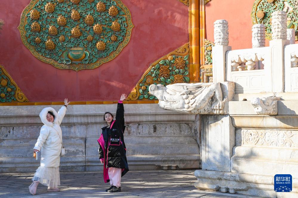 游客在北海公園內(nèi)參觀九龍壁(1月24日攝)。