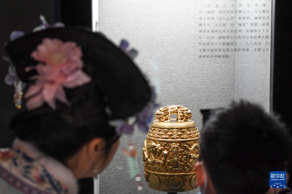 游客在故宮鐘粹宮觀看編鐘(1月28日)。