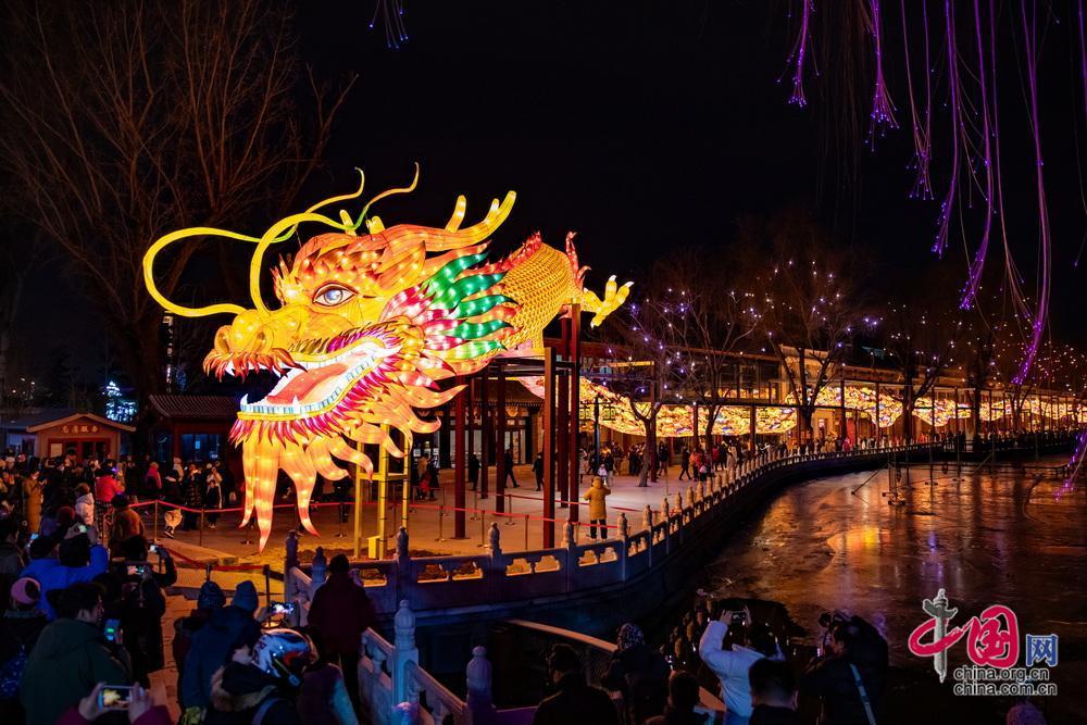 2月8日晚,在什剎海“荷花市場(chǎng)”邊名為“蛟龍出海”的巨型龍燈點(diǎn)亮,吸引無(wú)數(shù)市民游客駐足圍觀。中國(guó)網(wǎng)記者 鄭亮攝