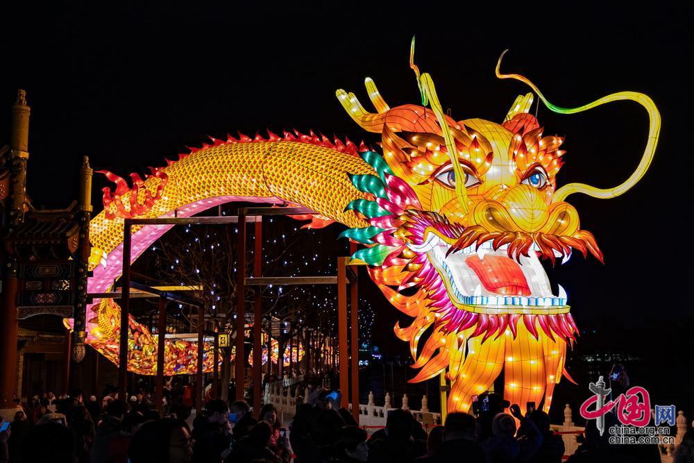 該主題景觀采用傳統(tǒng)彩燈藝術(shù)+現(xiàn)代科技光效,打造出長(zhǎng)約202.4米的超級(jí)游龍。中國(guó)網(wǎng)記者 鄭亮攝