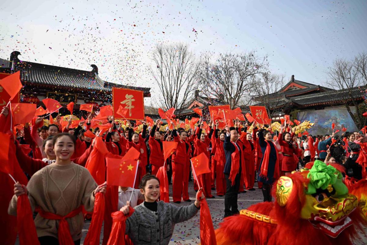 鼓聲起,鑼聲響。2月10日,在陜西西安華清宮景區(qū)望京門外熱鬧非凡,舞龍舞獅、迎春秧歌鑼鼓、新春唐宮樂舞等節(jié)目洋溢著濃郁的年味。
