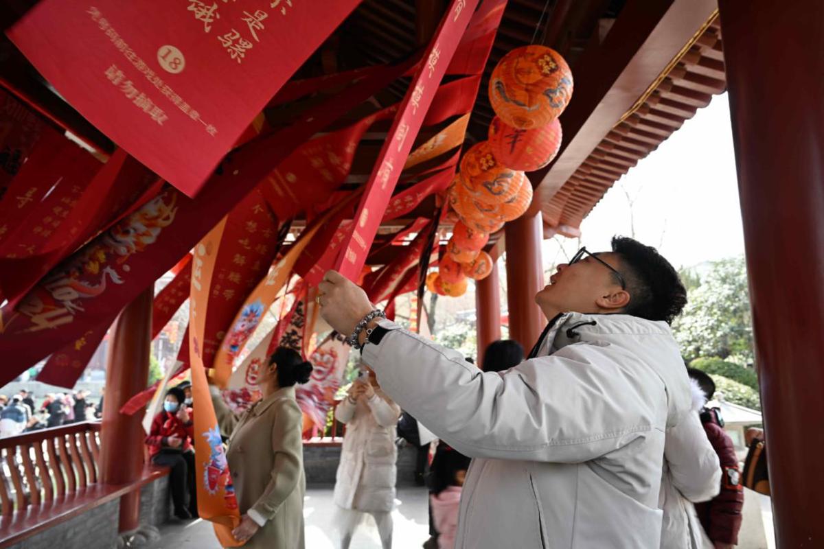 其中,以龍生九子的傳說典故為依據(jù),設(shè)置的九項與龍相關(guān)的游客互動體驗活動,唐宮對詩、好運投壺、幸運捶丸、萬事興龍射、滾鐵環(huán)、新春打錢眼、圈住好運、傳統(tǒng)猜燈謎、拓福迎春等,吸引了眾多參與者。