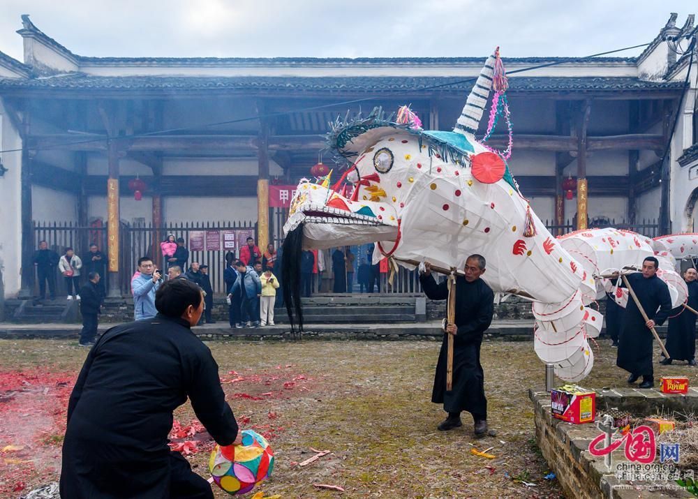 中國網(wǎng)訊 黃山市祁門縣文堂村,大年初四村民在村古祠老街里舞起了白金龍,共同祈福在新的一年里風(fēng)調(diào)雨,國泰民安。此龍在龍年才舞,每十二年一次。(文字/林堅 )