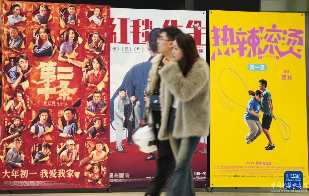 2月17日,在沈陽一家影院,觀眾從海報前經(jīng)過。